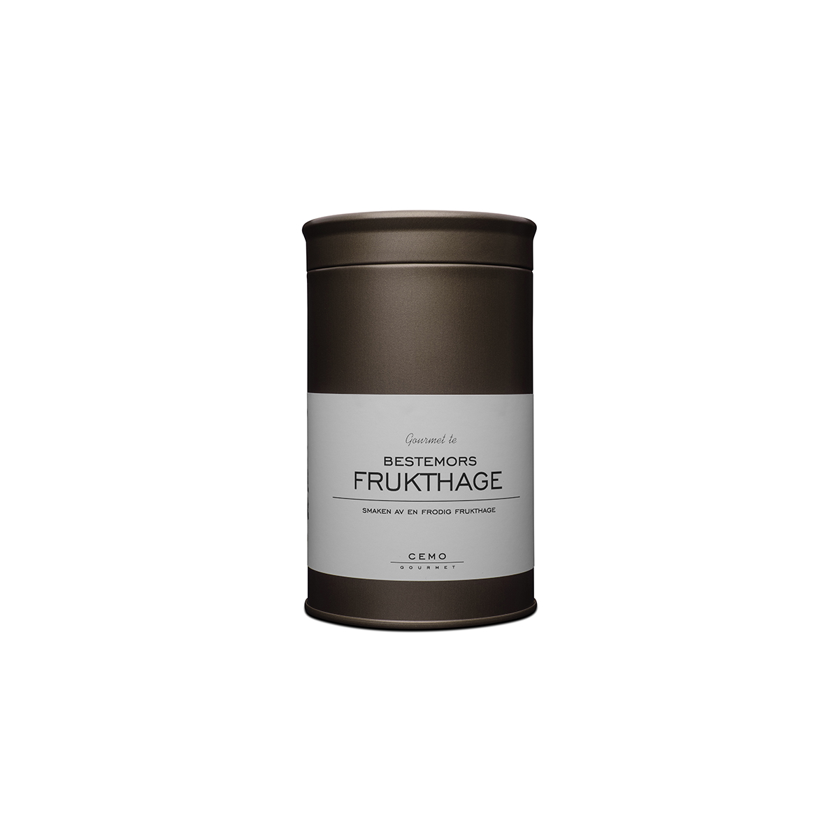 Bestemors Frukthage er en frisk fruktte med smak av en bugnende hage full av frukt og bær. Naturlig sødme og syrlighet fra eple, hibiskus og solbær gir en herlig teopplevelse. Perfekt både varm og som iste, for store og små.
