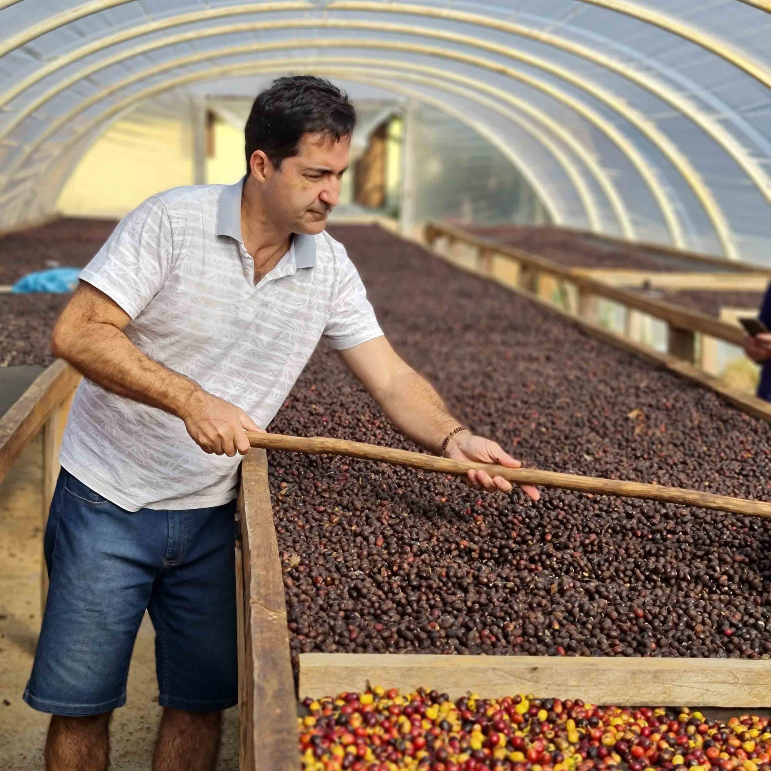 Flavio er en ytterst dedikert kaffebonde i Espirito Santo. Flavio plukker kun de modne kaffebærene for hånd og tørker kaffen på eleverte tildekkede tørkebord. Gården Aroma de Caparaó ligger i fjellområdet Serra do Caparaó i Espirito Santo som grenser mot Minas Gerais.