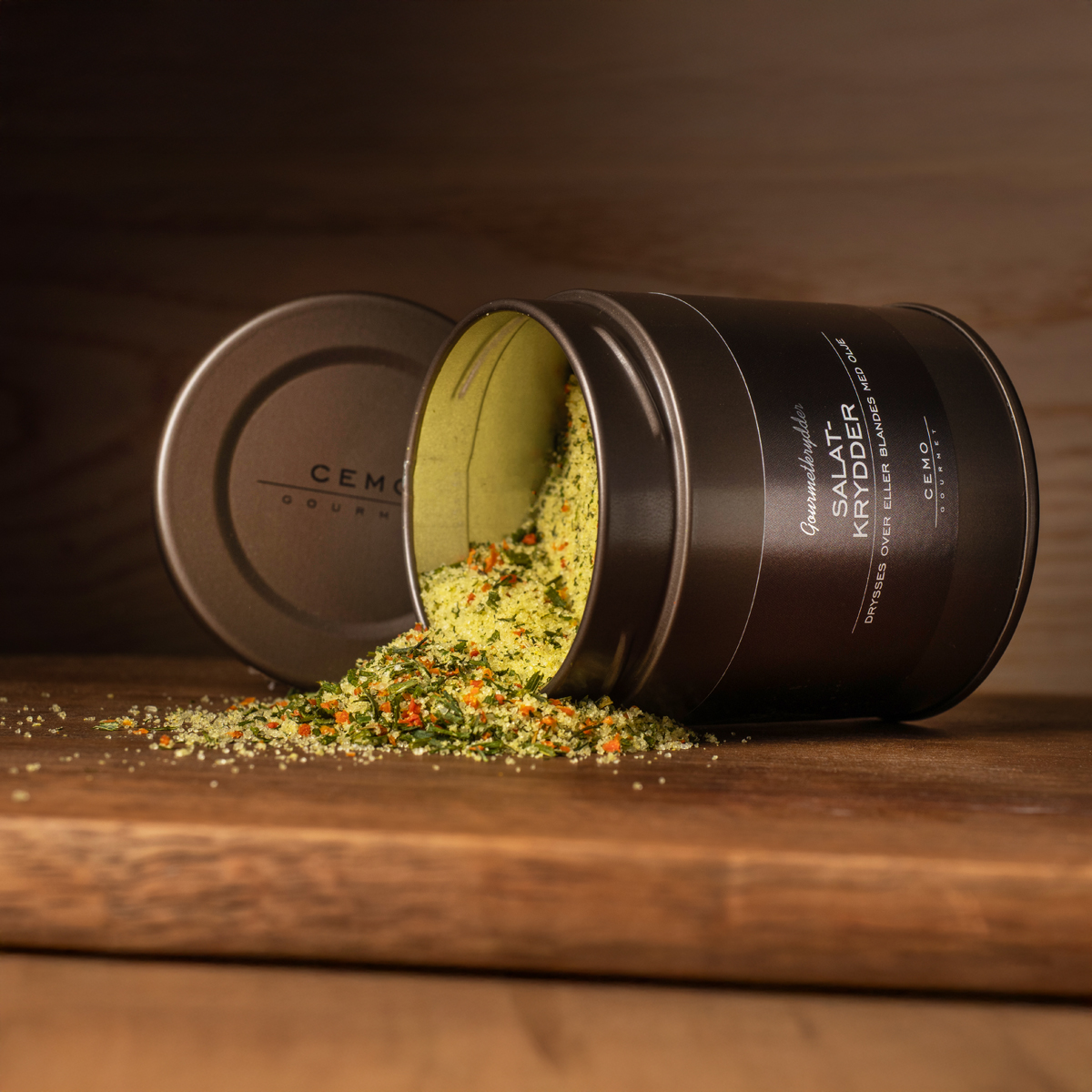Vårt salatkrydder er en allsidig krydderblanding laget med nøye utvalgte råvarer som gir en frisk smak til grønne salater. Krydderet har en nydelig smak og er perfekt å drysse over salat, men det er også perfekt å bruke i vinaigretter og dressinger. Bland  med olje og balsamico eller med youghurt og litt akasiehonning.