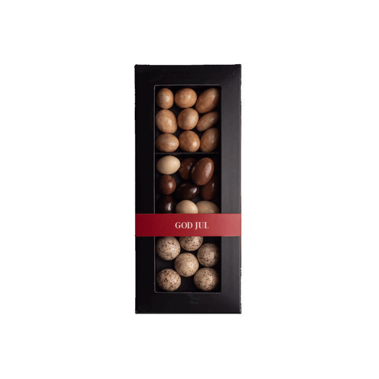 Du fortjener det beste: Sukker, helmelkspulverhvetemel, kakaosmør, kakaomasse, melasse, salmiakk, salmiakkaroma, lakrisekstrakt, emulgator (soyalecitin), vaniljearoma, fargestoff (vegetabilsk kull), antiklumpemiddel E555, overflatebehandlingsmiddel (skjellakk), vann, karamellaroma, glukosesirup, vegetabilsk olje (kokos, raps), anisaroma, jernoksider og hydroksider (E172), modifisert tapiokastivelse, kokosolje, kokosfett, sukkersirup, emulgator (E471), konsistensmiddel (sorbitolsirup), overflatebehandlingsmiddel (palmevoks). Kan inneholde spor av nøtter og mandler. Melkesjokoladen inneholder minst 30% kakaotørrstoff og minst 11% melketørrstoff. Nettovekt 190g.