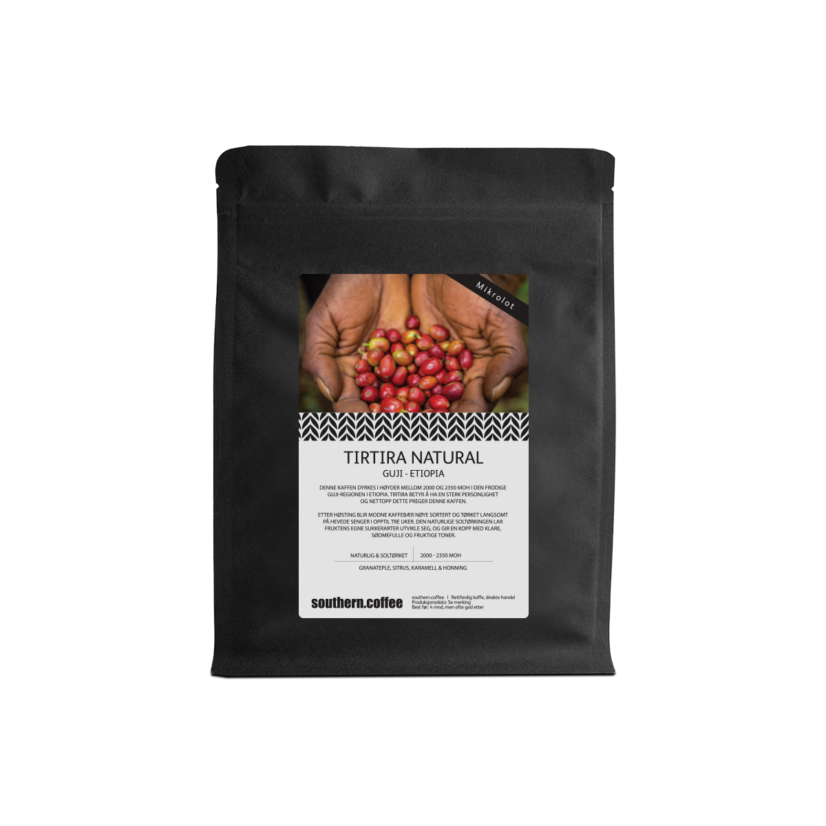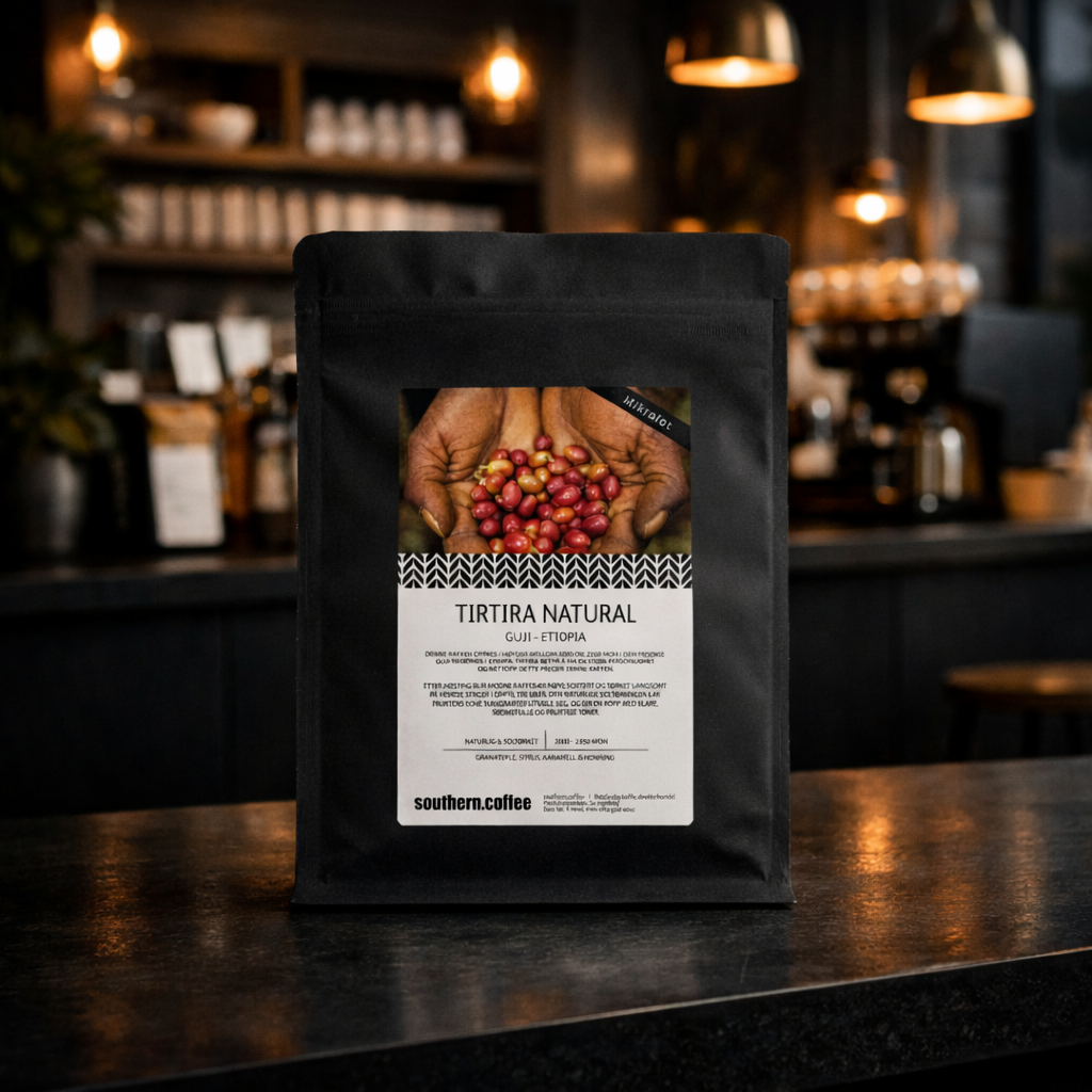 Denne eksklusive kaffen dyrkes i høyder mellom 2000 og 2350 meter over havet, i den frodige og fruktbare Guji-regionen i Etiopia. Navnet Tirtira betyr «å ha en sterk personlighet», noe som gjenspeiles tydelig i kaffens komplekse og uttrykksfulle smaksprofil.