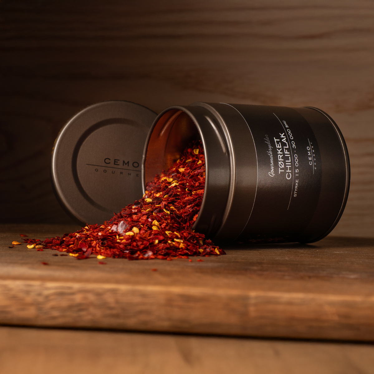 Tørket chiliflak med både styrke og smak gir maten din varme og karakte. Med en styrke på 15 000–30 000 SHU tilfører disse chiliflakene akkurat passe sting uten å overdøve andre smaker. Chiliflak er perfekt til gryter, sauser, pizza, wok, marinader og alle retter som trenger dybde, piff og krydret varme. Et must for deg som liker litt ekstra smak!